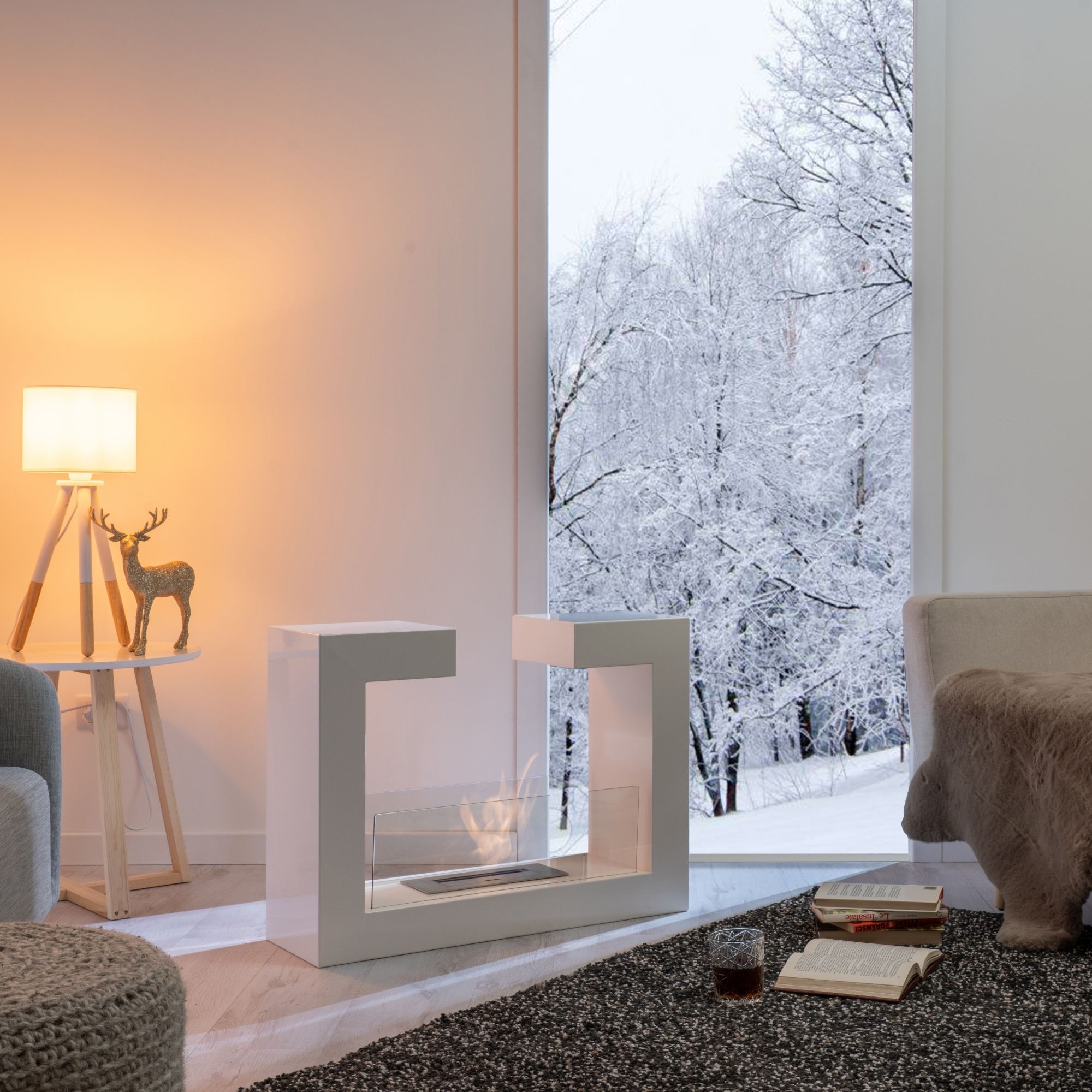 Camino bioetanolo bifacciale dal design unico, Magnor è un pezzo esclusivo che non può mancare nella vostra casa. La struttura a U in metallo e il vetro temperato, posizionato ai lati, protegge la fiamma da eventuali colpi di vento, ponendola in risalto. Ciò rende Magnor adatto anche ad ambientazioni esterne.